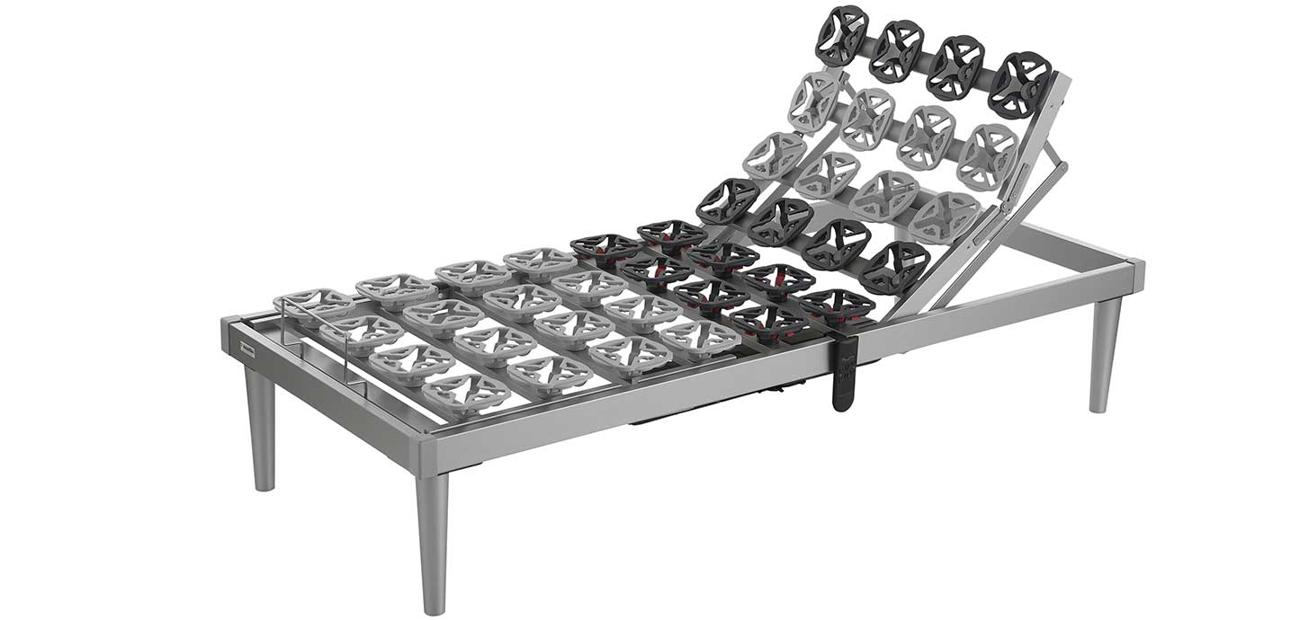 The plates distribute the weight evenly over the entire surface occupied by your body while lying down and special shock absorbers respond to the body’s weight based on key pressure points. The firmness adjusters on the plates allows you to adjust the firmness of the adjustable base based on your individual preferences, so that you have adequate support and can enjoy a refreshing and rebalancing rest. Thanks to the double joints and the handy remote control, you can independently adjust the height (and therefore type of comfort) of the head, shoulders, torso and legs. The bed base in double version can be ordered as a single support surface or as two separate bases to be placed side by side.