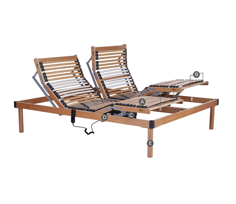 The built-in motor in each bed base facilitates effortless lifting of weights up to 110/120 kg via remote control. The dual movements enable independent lifting of the head and legs.