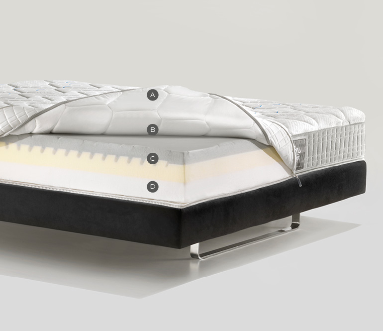 Memoform® is the most anatomical of the materials used, and is designed to react to the weight of the body and to adapt perfectly to each silhouette. This property offers a pleasant feeling of ease and lightness during rest, and benefits the relaxation of the spine
