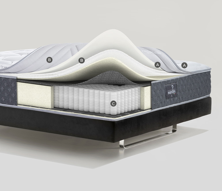 Memoform® is the most anatomical of the materials used, and is designed to react to the weight of the body and to adapt perfectly to each silhouette. This property offers a pleasant feeling of ease and lightness during rest, and benefits the relaxation of the spine