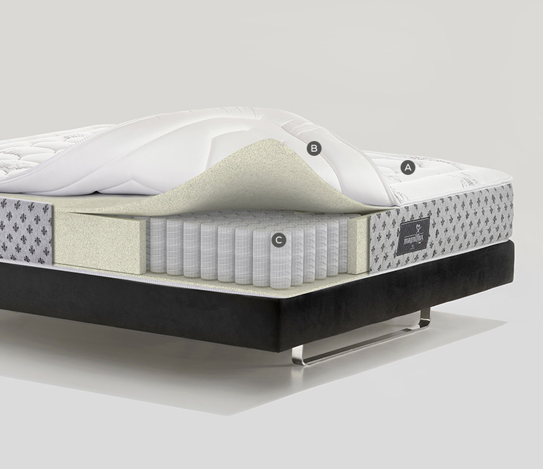 The mattress provides differentiated support to every part of the body. Anatomical with pocket springs.