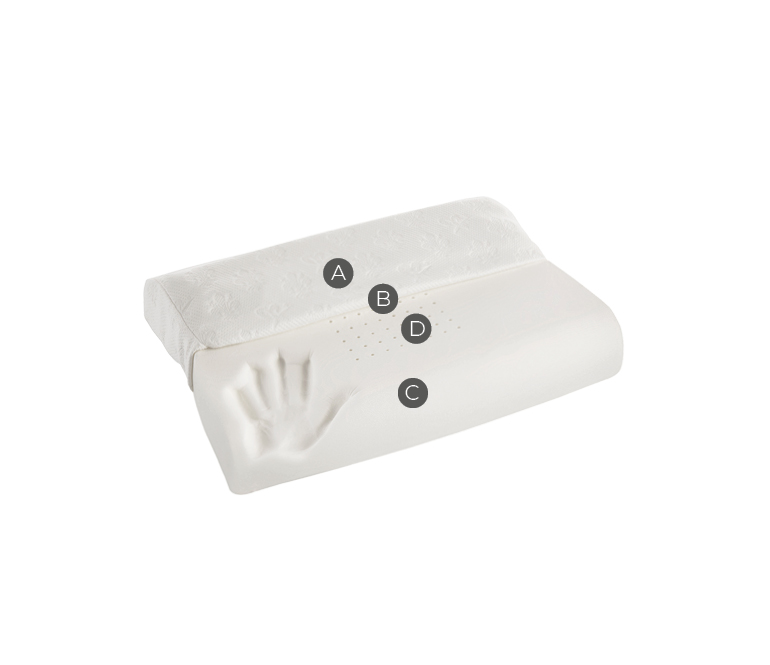 The interior in Memoform and the double-wave shape are designed to react to the weight of the neck, shoulders and cervical area, offering a pleasant feeling of comfort while you rest.