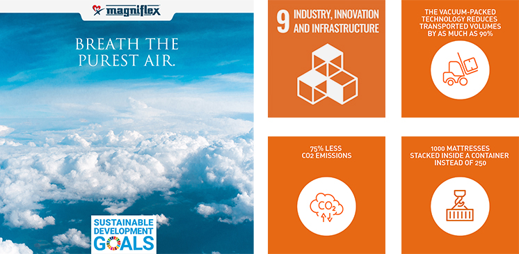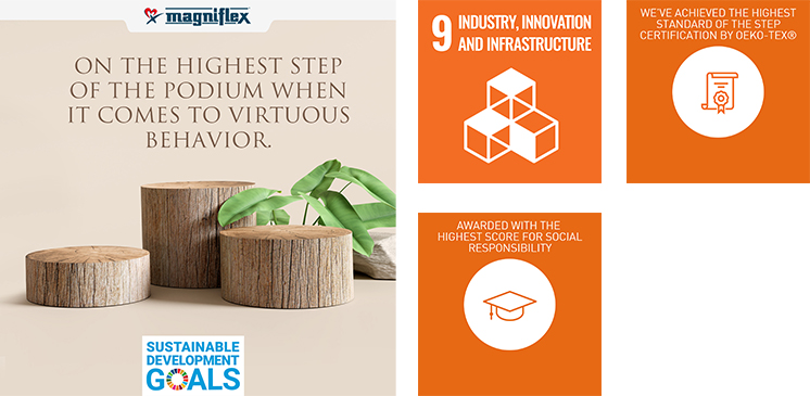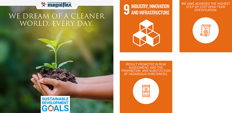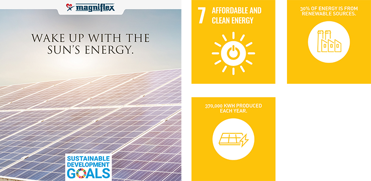 Magniflex has signed up for the ambitious United Nations Sustainable Development Goals project, which aims to achieve 17 goals by 2023. 17 objectives that are fundamental to ensure all the Earth’s inhabitants have a better and more sustainable future. It is a project that involves various social and economic sectors, aimed at improving living conditions for everyone. Guaranteeing access to resources and preserving the environment and climate, so that future generations will awake every day into a more inhabitable world.