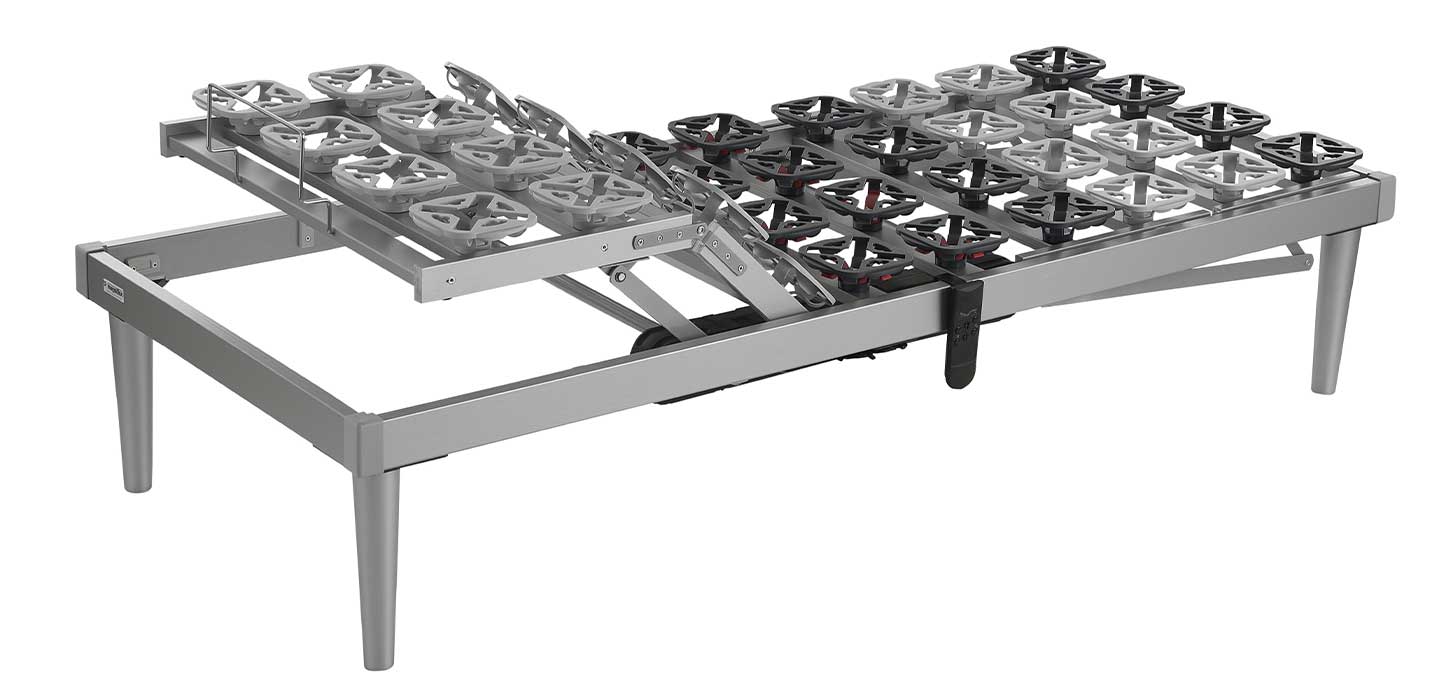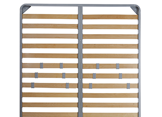 Composé d’un cadre en fer à double portée et de lattes en bois de hêtre, il est équipé d’un système de réglage de la rigidité au niveau de la région lombaire. Pour un meilleur soutien du corps.