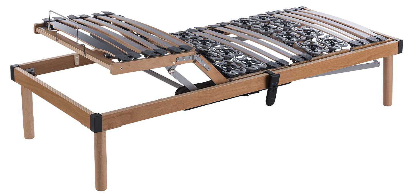 Le sommier est composé de lattes en bois de hêtre, équipées de dispositifs de réglage de la rigidité qui permettent un soutien personnalisé de l'ensemble du corps. La version double consiste en deux filets simples couplés pour une meilleure ergonomie et une meilleure répartition du poids.