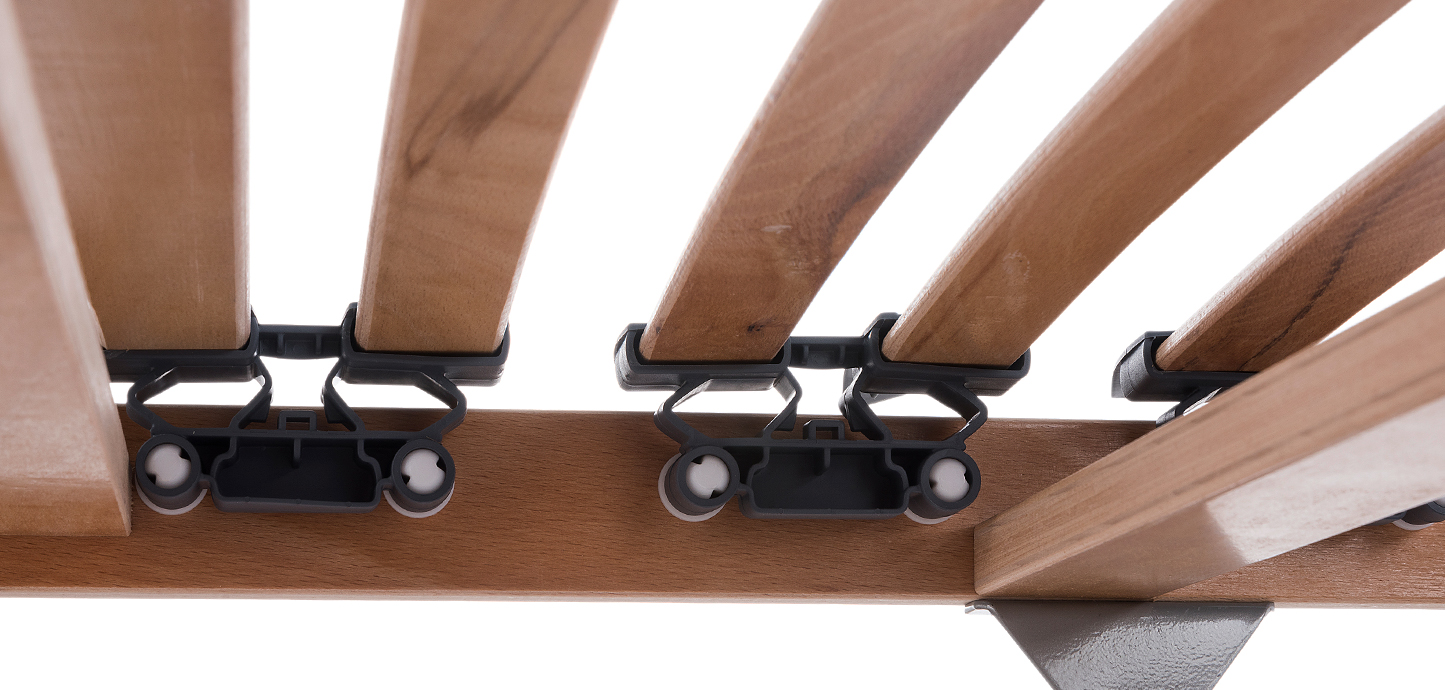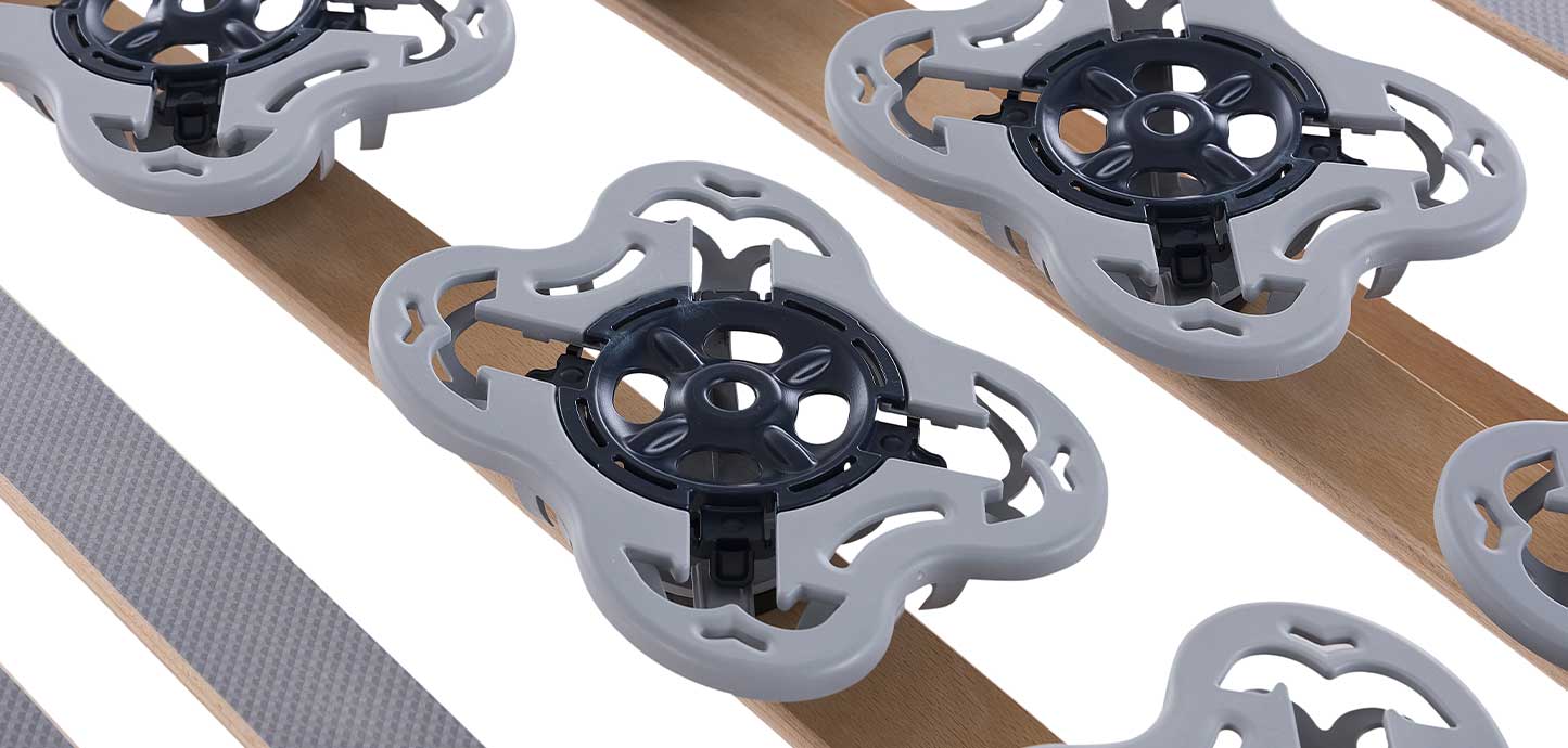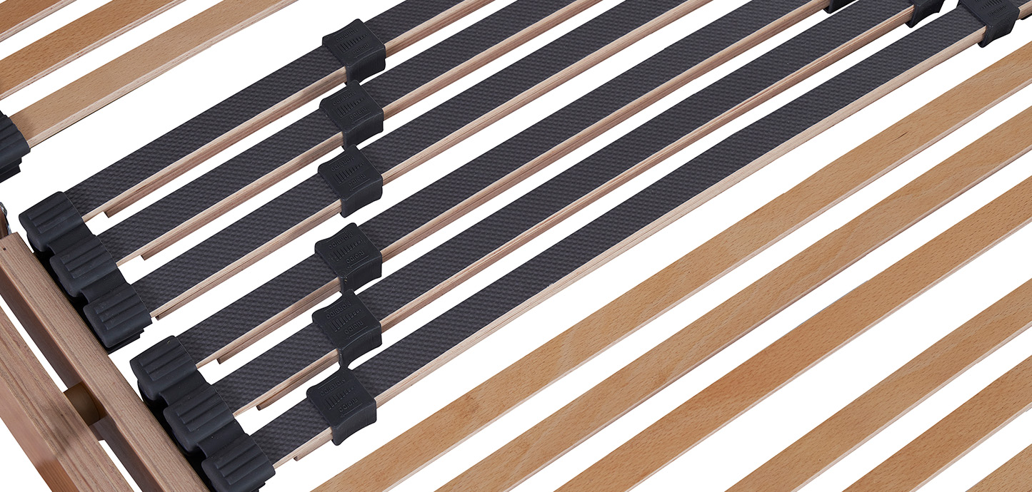 Le piastre ergonomiche con ammortizzatori regolano la rigidità della rete in maniera personalizzata. Doghe in multistrato di faggio con ammortizzatori e regolatori di rigidità, per un sostegno ottimale del corpo. I doppi snodi e il telecomando consentono di regolare in modo indipendente il comfort della testa, spalle, busto e delle gambe.