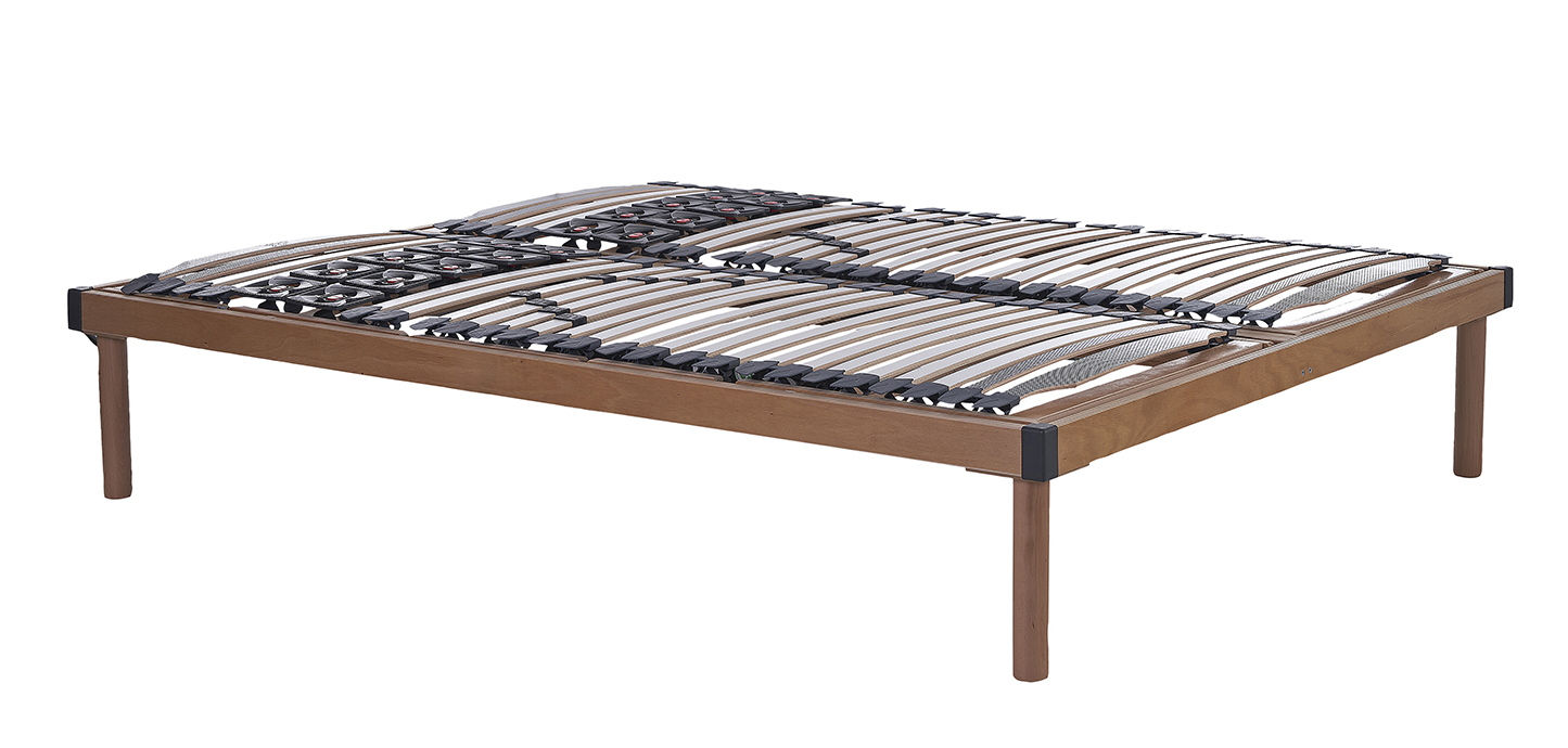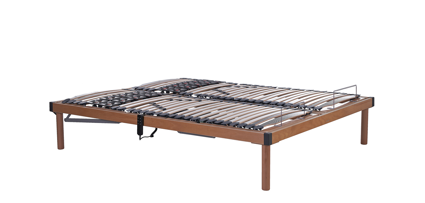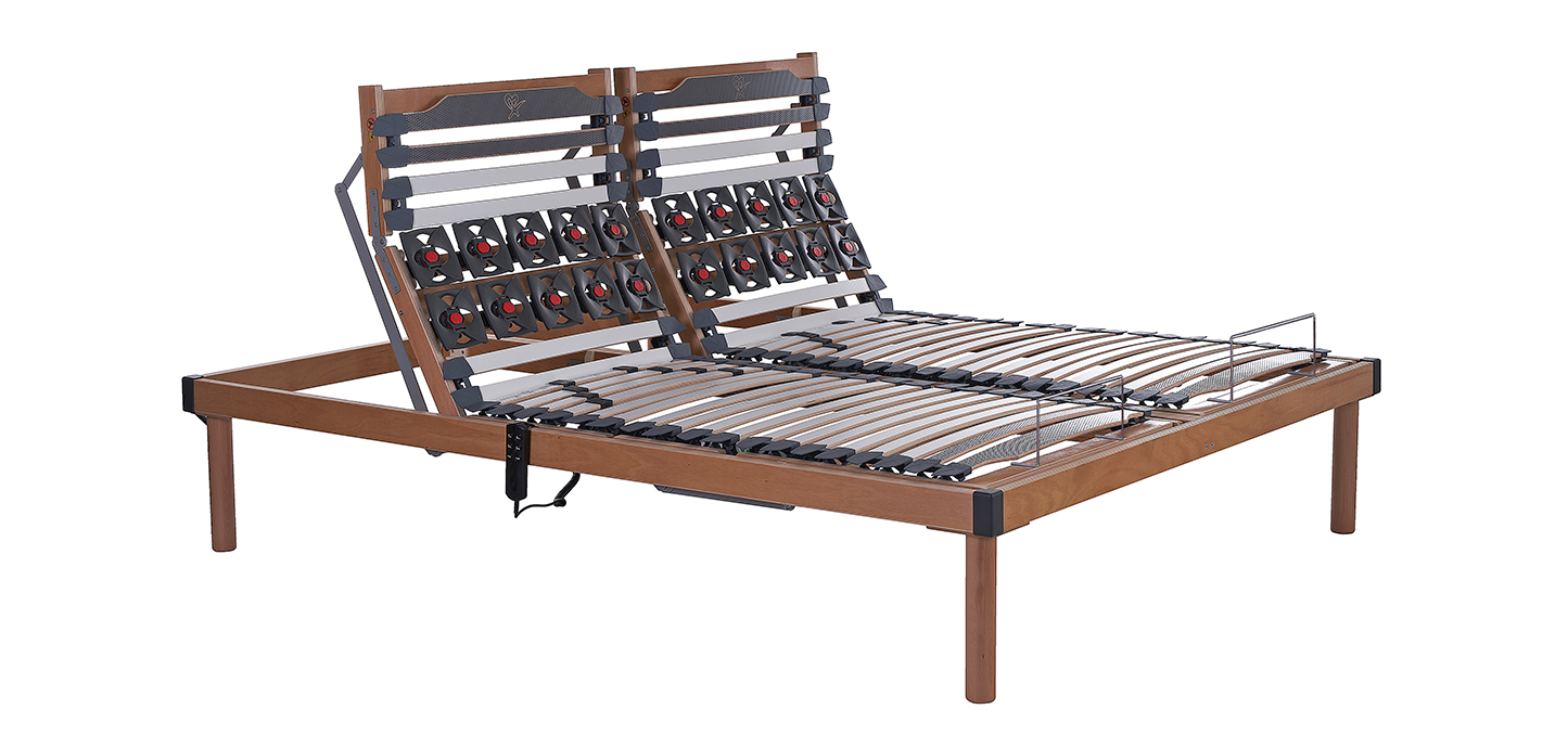 Composta da una struttura in multistrato di faggio. La rete è dotata di piastre ergonomiche e regolatori di rigidità che permettono di distribuire il peso del corpo in modo uniforme sull’intera superficie di riposo in maniera personalizzata. Puoi regolare l'inclinazione di testa, spalle, busto e arti inferiori scegliendo il comfort che preferisci grazie al pratico telecomando.