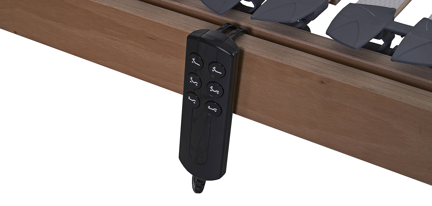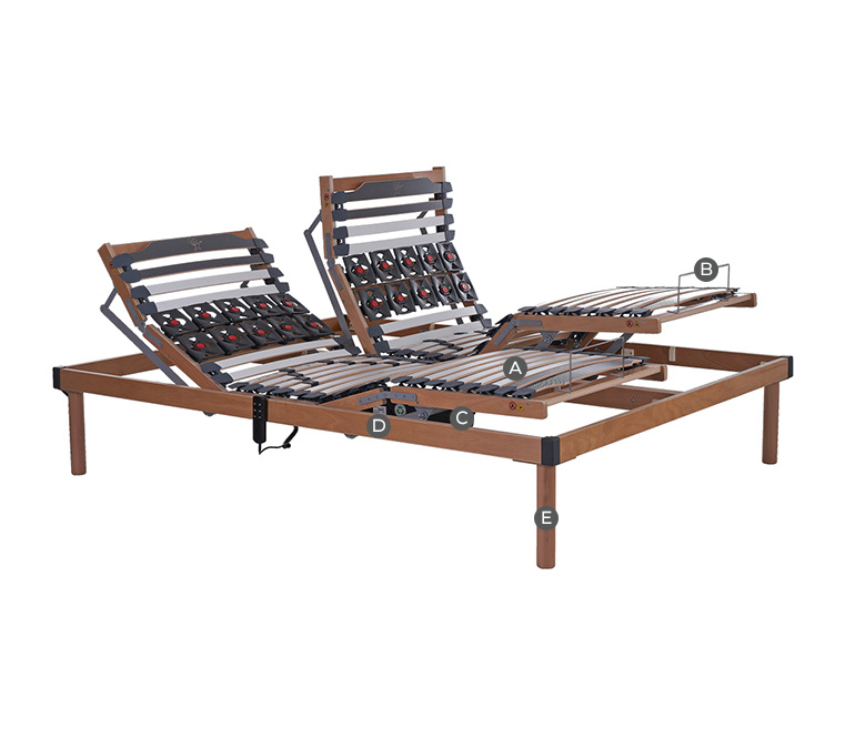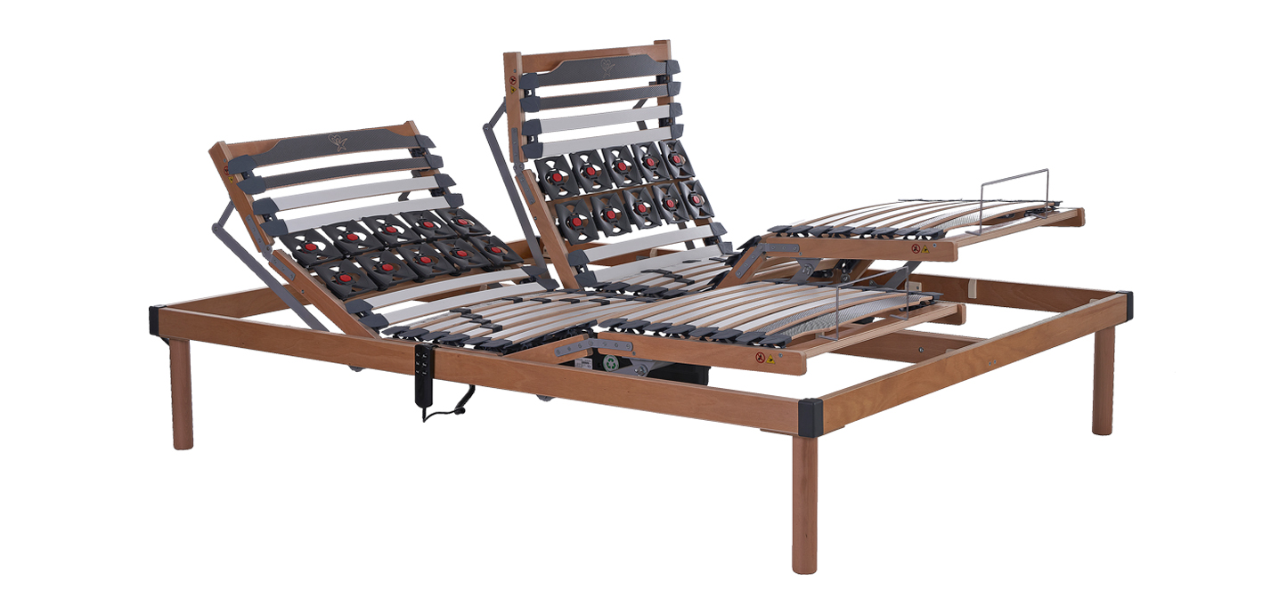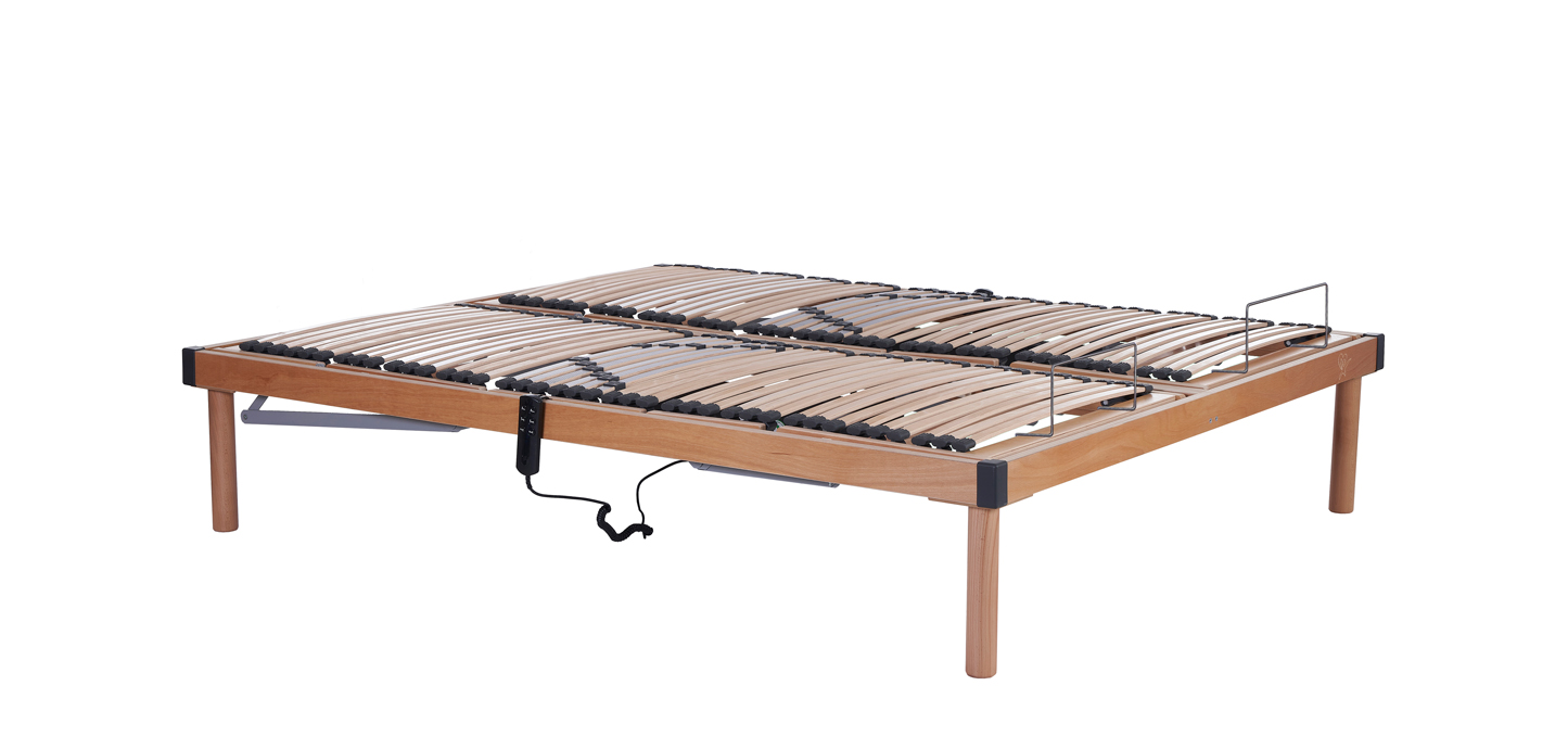 Composta da una struttura in multistrato di faggio. La rete è dotata di piastre ergonomiche e regolatori di rigidità che permettono di distribuire il peso del corpo in modo uniforme sull’intera superficie di riposo in maniera personalizzata. Puoi regolare l'inclinazione di testa, spalle, busto e arti inferiori scegliendo il comfort che preferisci grazie al pratico telecomando.