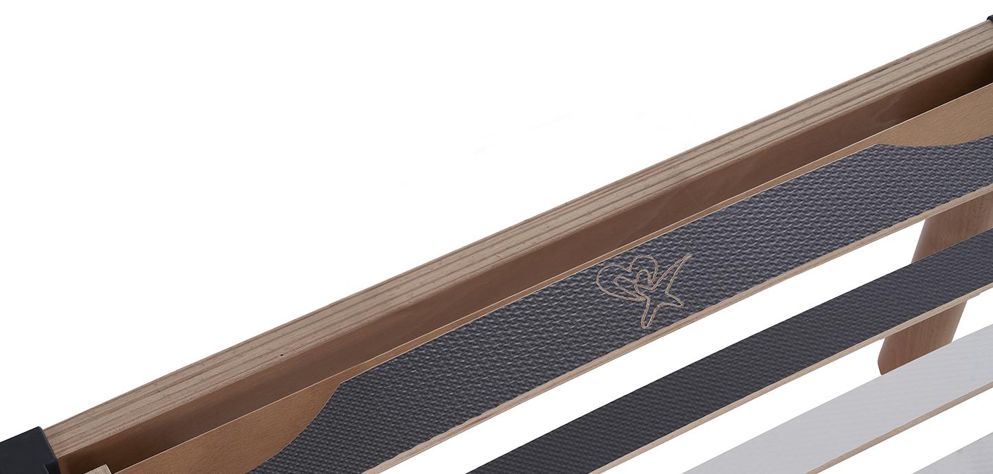 In multistrato di betulla. L’altezza del telaio è di 7x2,5 cm. Paracolpi agli angoli per renderli stondati e proteggere gli stinchi.