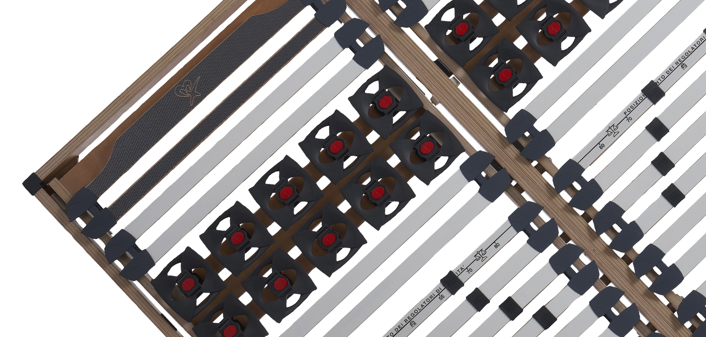 Le piastre distribuiscono il peso uniformemente sull'intera superficie di riposo e gli speciali ammortizzatori permettono di accogliere il peso corporeo in base ai punti di pressione. I regolatori di rigidità presenti sulle piastre consentendo di regolare la rigidità? della rete in maniera personalizzata in base alle singole preferenze.